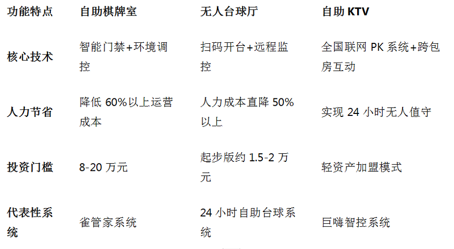 随着市场需求增长,各类智能管理系统纷纷涌现。下表对比了三大娱乐业态的智能化解决方案特点: