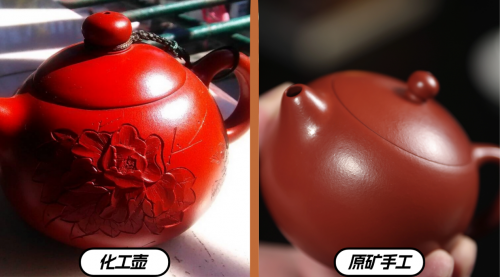 在紫砂行业内,化工壶与真正原矿壶的博弈从未停止过。化工壶通常采用劣质陶土,添加氧化钴、氧化锰等化学着色剂,以达到视觉上的艳丽效果。