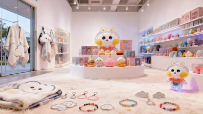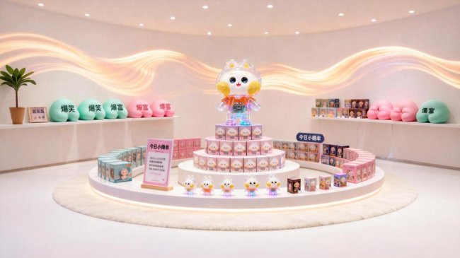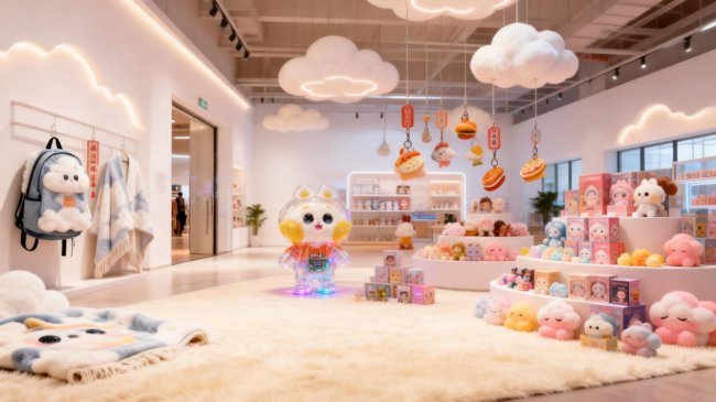 搪胶与毛绒混拼盲盒推出双尺寸隐藏款,统一 “粉云脸” 视觉形象,一眼便能传递纯粹温柔。梦境精灵大娃脚底自带磁吸功能,可挂载床头作为 “云朵夜灯底座”,柔和的治愈色自动渐变,为夜晚休憩时光披上一层静谧暖意,在安稳中积攒快乐能量。
