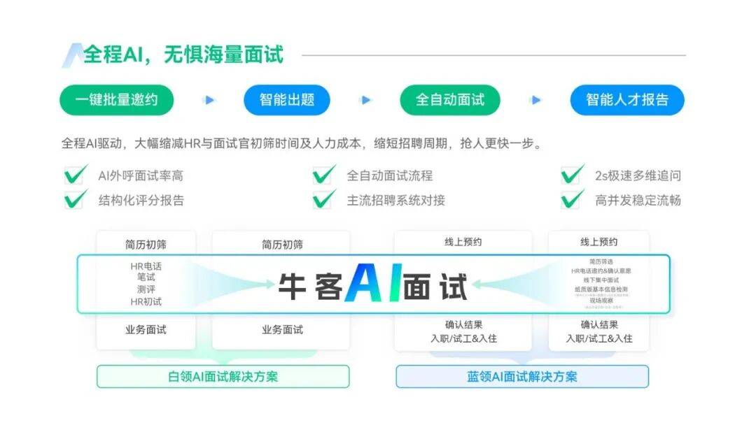 因此,当传统流程在效率和人力投入上压力开始集中显现,寻找更高效、可规模化的解决方案成为必然选择。图拉斯与牛客携手,落地AI面试解决方案,致力于用AI解决招聘中高频、标准化、重复度高的问题。